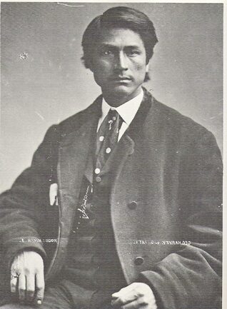 Great Aunt Frances Harney Johnson also made the long walk up the coast and resettled at Siletz. Her Native name was “Quis-quas-hum,” and she was known to be full of fun. Frances met a young Army lieutenant, Phil Sheridan, who worked on Native American treaties and invited her and her brother, George Harney, to visit Washington D.C. Details of this trip are unclear, except for the 1874 photo of George by the Smithsonian Institute (below).